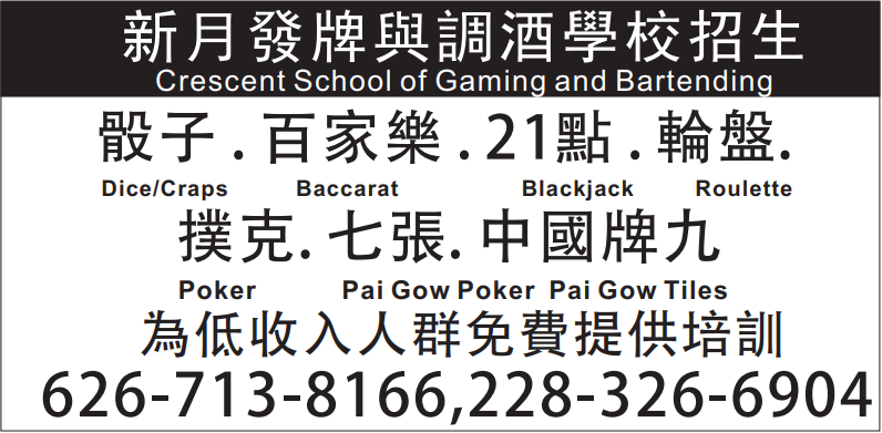 新月發牌調酒學校 提供低收入人群免費培訓