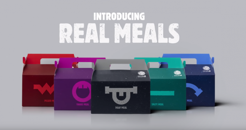 連鎖速食餐廳麥當勞的快樂分享餐已是家喻戶曉,但其死對頭漢堡王卻嗤之以鼻,認為套餐應忠實呈現人們感受。漢堡王正與美國心理健康組織(Mental Health America)合作,因應5月為心理健康認知月(Mental Health Awareness Month),漢堡王推出一系列的「真實套餐」(Real Meals),主打呈現真實性情的漢堡套餐,包括「不爽」的負面情緒。