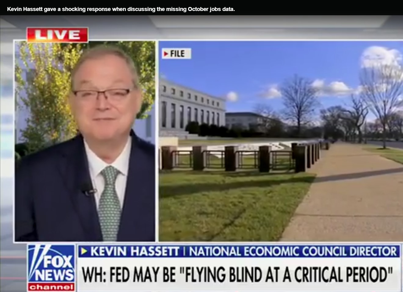 哈塞特周四接受《福斯新聞》節目《America’s Newsroom》訪問時指出:「10 月的家庭調查沒有進行,所以我們只能取得部分就業報告。我們會有新增就業人數,但不會有失業率資料,而這只會影響一個月。」