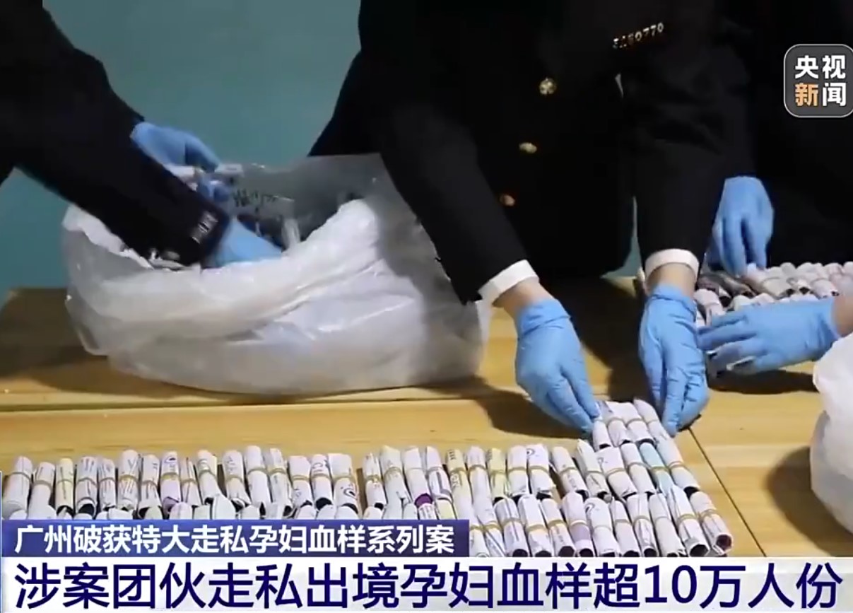 《央視》報導,孕婦血液樣本承載人類遺傳基因關鍵資訊,屬大陸嚴格限制進出口物品。廣州海關緝私局近日在廣州、佛山、深圳三地同步展開集中收網行動,成功抓捕2個專門從事孕婦血樣走私出境的犯罪集團。經初步查明,涉案集團自2022年以來,累計走私出境孕婦血液樣本超過10萬人份,非法獲利逾3000萬元(人民幣,同下),涉案範圍遍及全國23個省份。