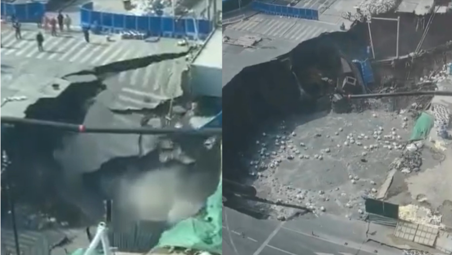 綜合陸媒報導,七莘路附近居民從高樓目擊坍塌瞬間,並用手機錄下全程PO網,還一度憂心直呼「我怎麼感覺我們這個樓在震動...」。影片中可見,一旁以簡易貨櫃屋搭建的工寮被「天坑」吞沒,許多施工人員眼見情況不對勁,倉皇逃離現場。