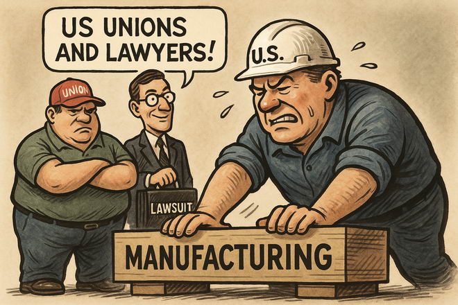 這種傾向,背後是選票邏輯:工會成員是重要票倉,律師行業是重要金主。結果是:政策一邊大聲喊“重建製造”,一邊又默許乃至鼓勵訴訟與過度維權。